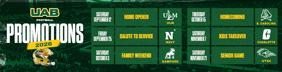 UAB Alumni and Employees are eligible for a 10% discount on both Football and Men’s Basketball season tickets. This 10% discount is applied to the season ticket portion and does not reduce any scholarship seat fees required for priority seating locations. For more information, you can call the UAB Athletics Ticket Office at